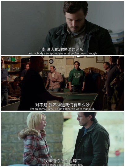 · 🎬海边的曼彻斯特丨2017丨137 mins 🇩🇪【美】肯尼思·洛纳根/编+导 🏆2017年第89届奥斯卡金像奖·最佳男主角【卡西·阿弗莱克】/最佳原创剧本 ↓↓ 『生命总有尽头·人的创伤没有』【8.8/10】 (影感3.6丨表达2.5丨表演1.8丨美感0.9) · 🎞️观影笔记 ↓↓ 0️⃣整体感受 喜欢导演结构上的处理,交叉闪回的现在和过往,贴合人的记忆特点,让创伤固执不去的状态,直观地脱『影』而出。 · 生活最可怕的不是变成一潭死水,而是静水流深,明明是一汪活水,却长久得滞留在微微涌动的漩涡之中…… · 年轻时候,总以为被原谅就可以走出创伤,日子久了,发现最重要的不是原谅,而是自我疗愈,和生活达成和解的能力。 · 1️⃣影感【3.6丨4分】 ①视听享受丨0.9分 ②镜头剪辑丨0.9分 ③场面调度丨0.9分 ④结构设计丨0.9分 · 2️⃣表达【2.5丨3分】 ①逻辑严密丨0.9分 ②情节出彩丨0.8分 ③主题深刻丨0.8分 · 3️⃣表演【1.8丨2分】 ①角色魅力丨0.9分 ②演技出众丨0.9分 · 4️⃣美感【0.9丨1分】 · 5️⃣写在最后 ↓↓ 创伤,是一种循环,“We can't beat it.” ·